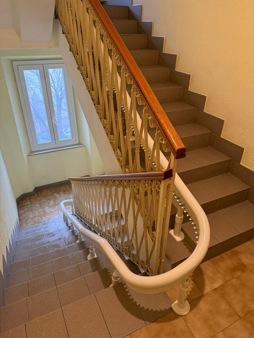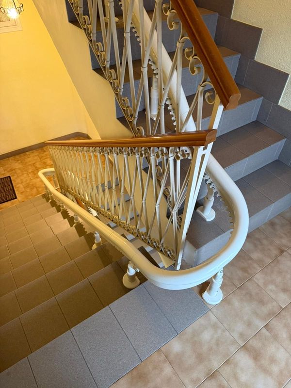 È la poltroncina montascale con guida curva, adatta per superare tante rampe di scale. Bella, robusta e solida, è sicura per gli anziani, semplice da utilizzare, è comoda e pratica grazie alla pedana poggiapiedi e ai braccioli particolarmente resistenti. È adatta anche per installazioni esterne.