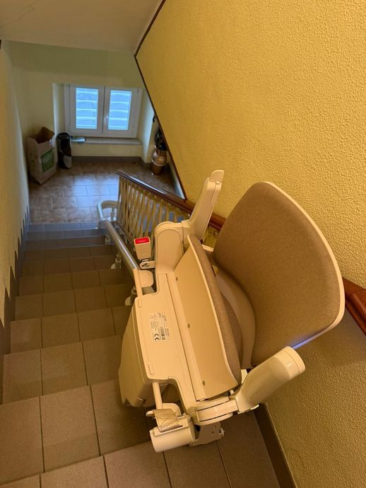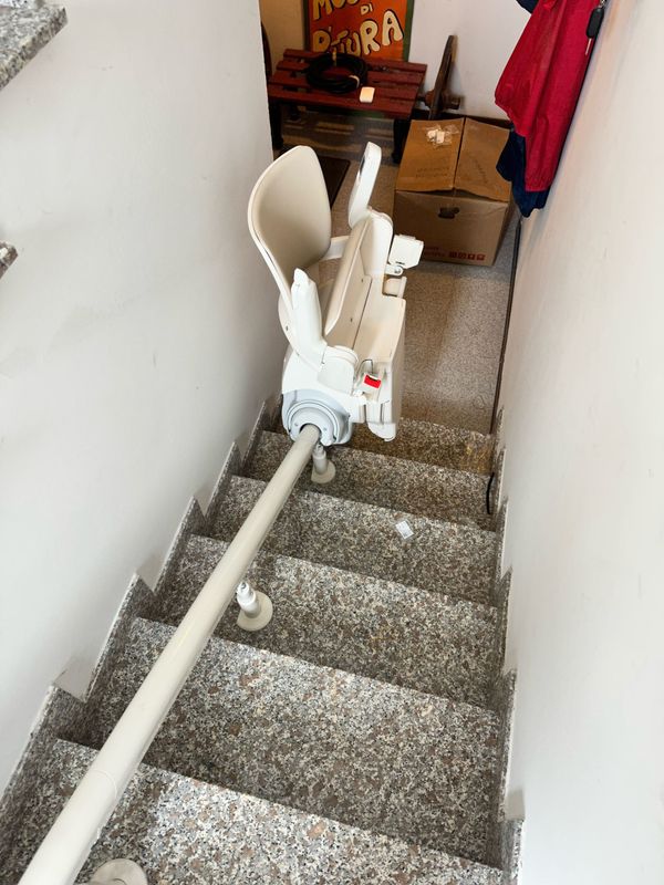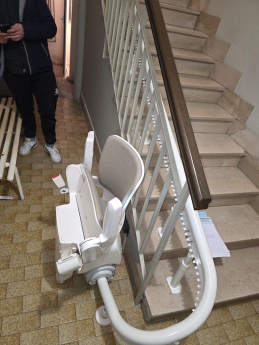 Presso la nostra sede a Pollenza, potrai visionare anche il montascale con poltroncina pensato appositamente per tutte le scale che formano una curva o una qualsiasi variazione di pendenza. Si tratta di un prodotto di alta qualità, in grado di offrire un trasporto comodo e tranquillo.